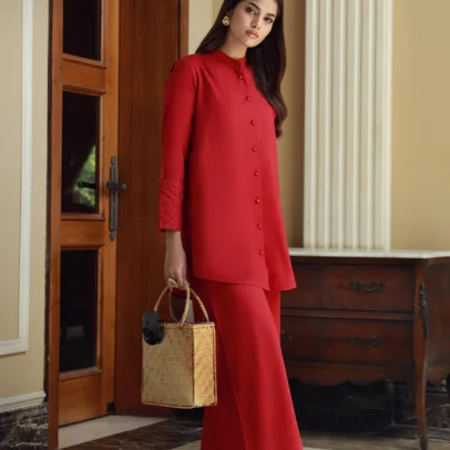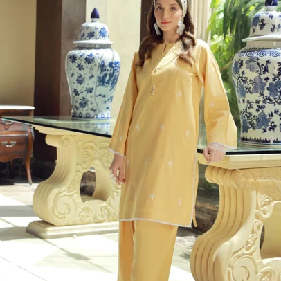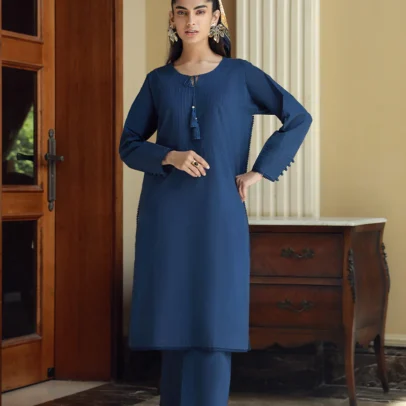 Solid Embroidered Slub Viscose Stitched 2 Piece (Shirt/Trouser)