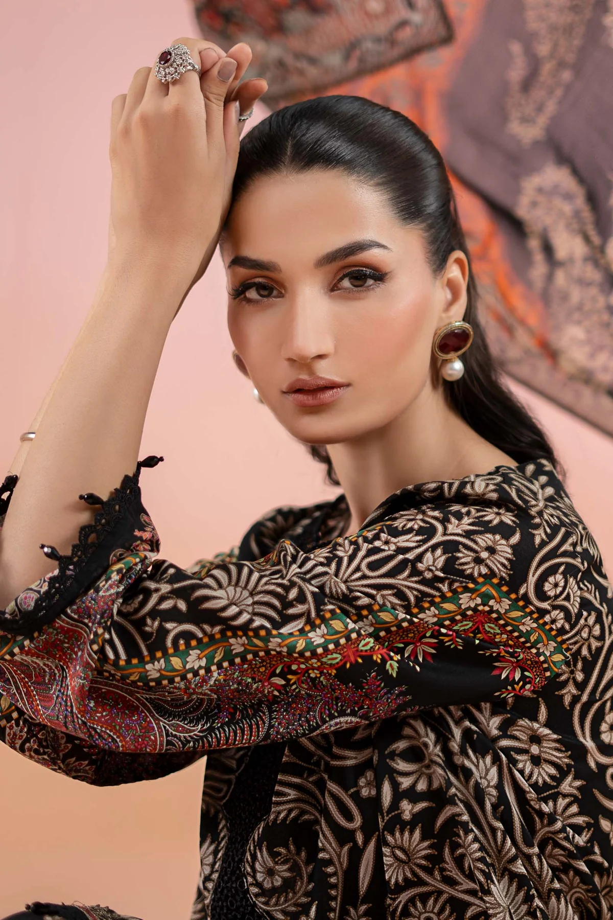 Full-Sleeves With Lace & Pearl Drop Detailing