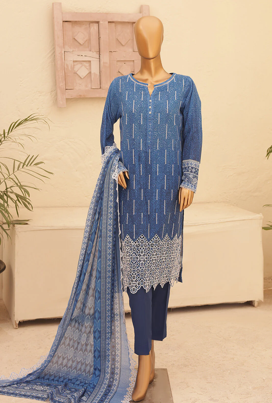 Experience the perfect blend of comfort and style with our pure lawn fabric featuring a digital printed bamber chiffon dupatta, adding a touch of vibrant elegance to your wardrobe.