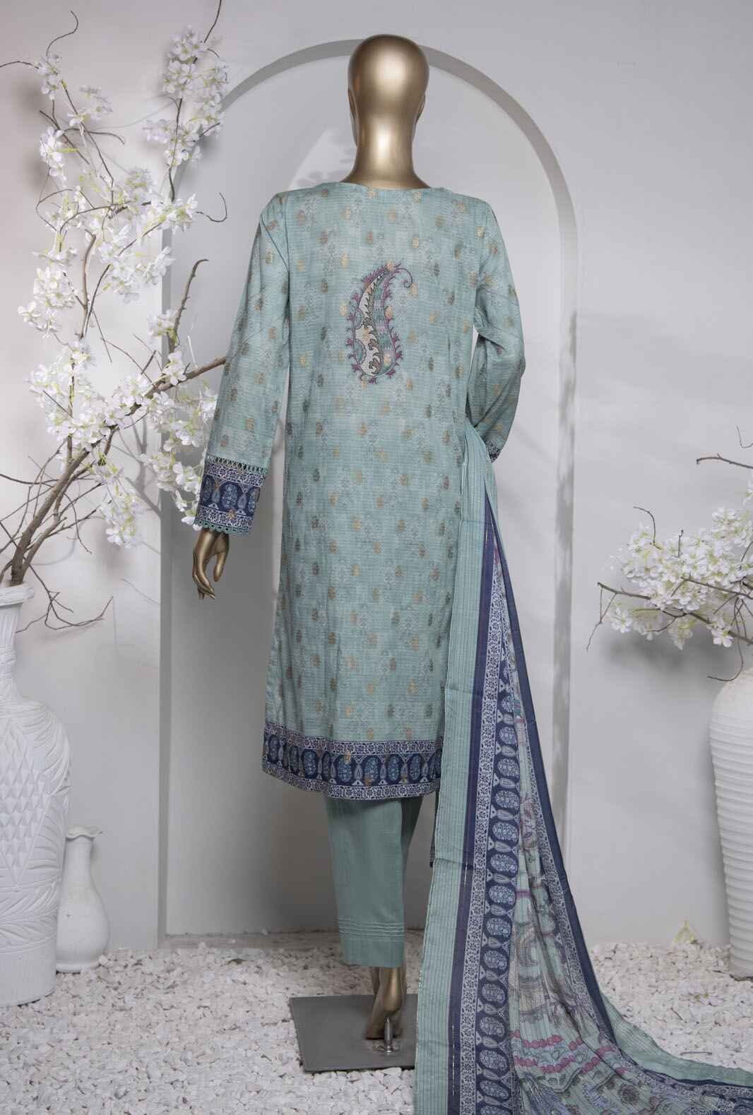 3 Piece Unstitched - Turkish Jacquard Digital Printed lawn Suit -TJP-1031