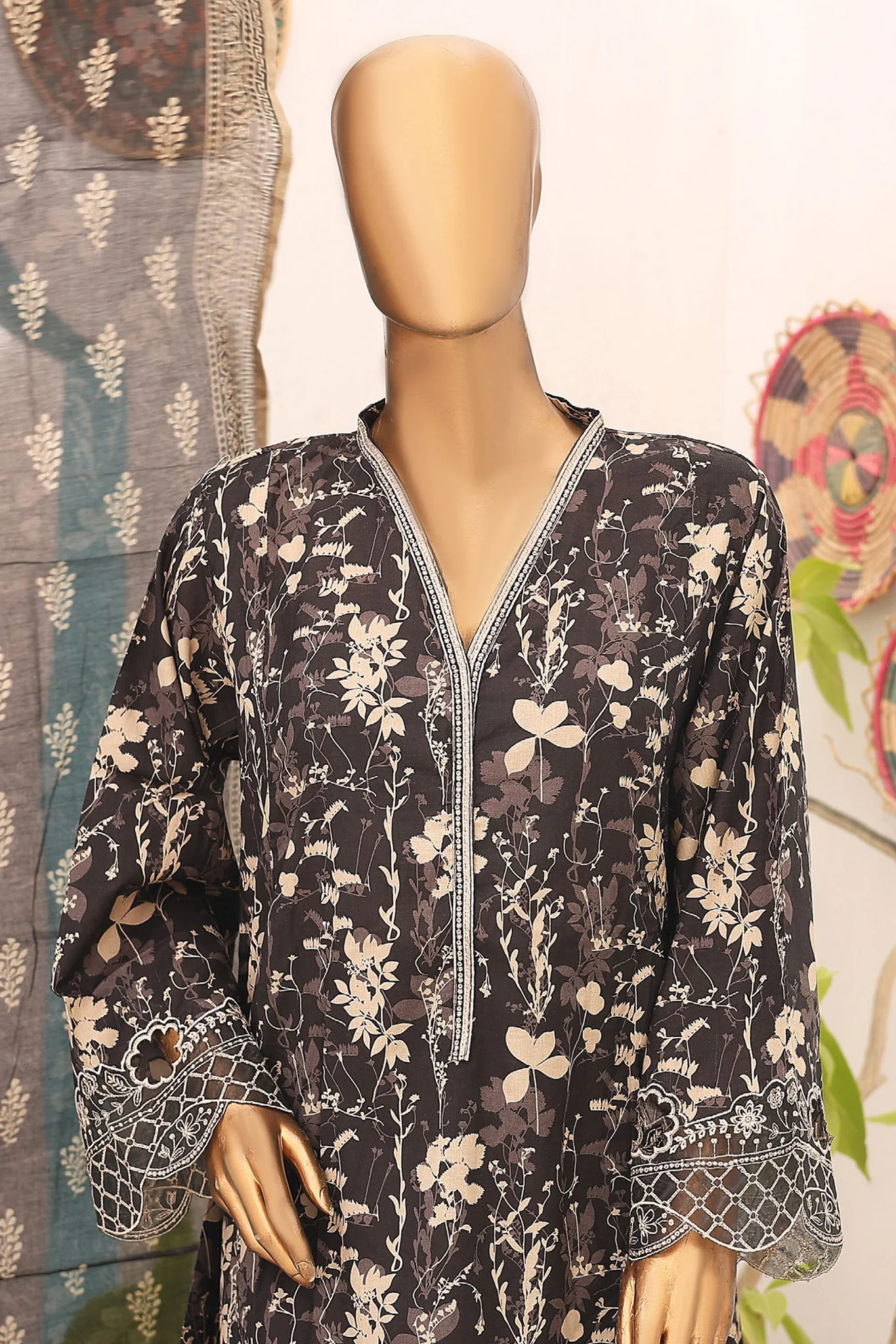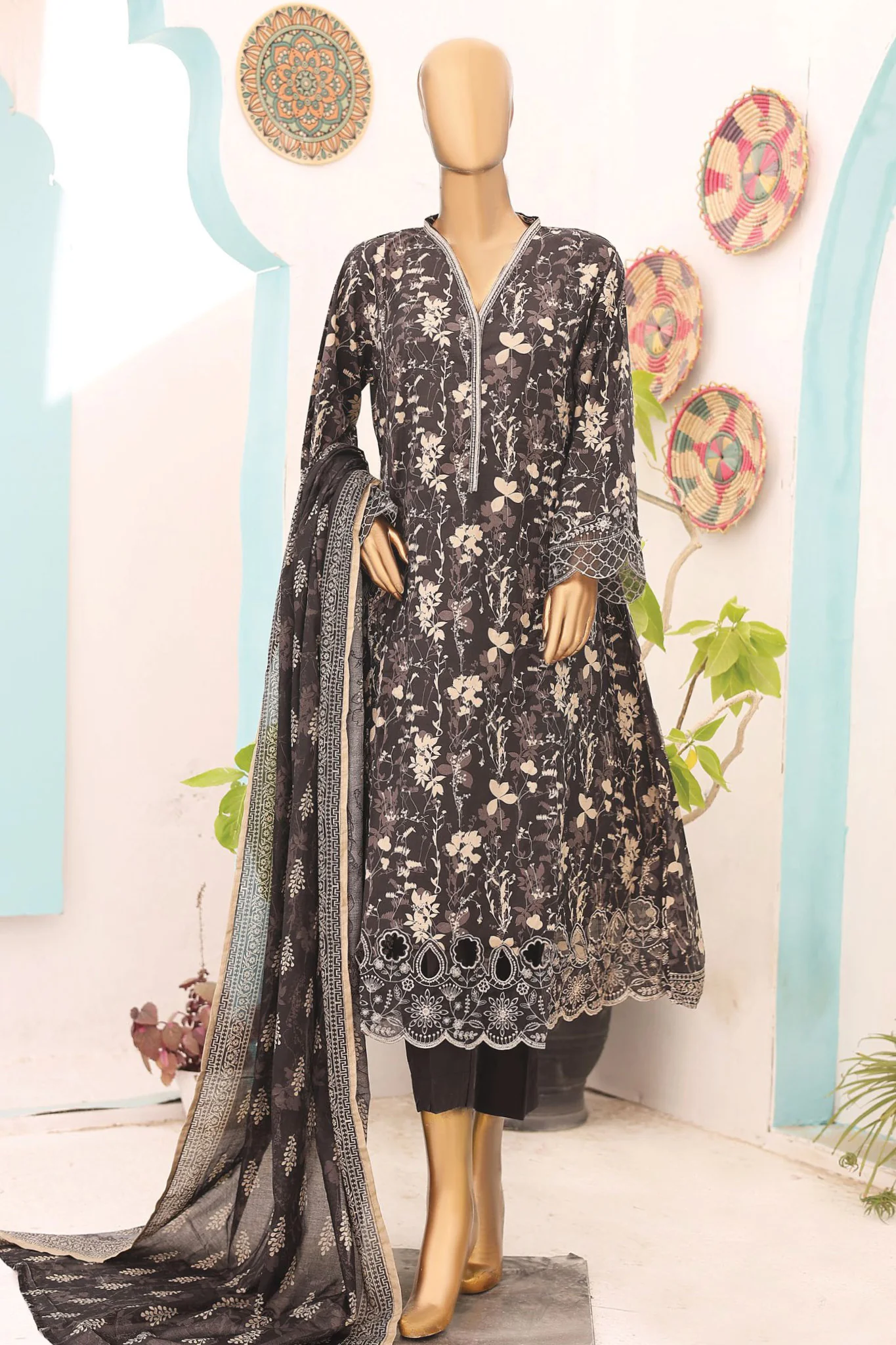 Bin Saeed Stitched 3 Piece Emb Lawn Frocks Collection'2024-SM-810-Black