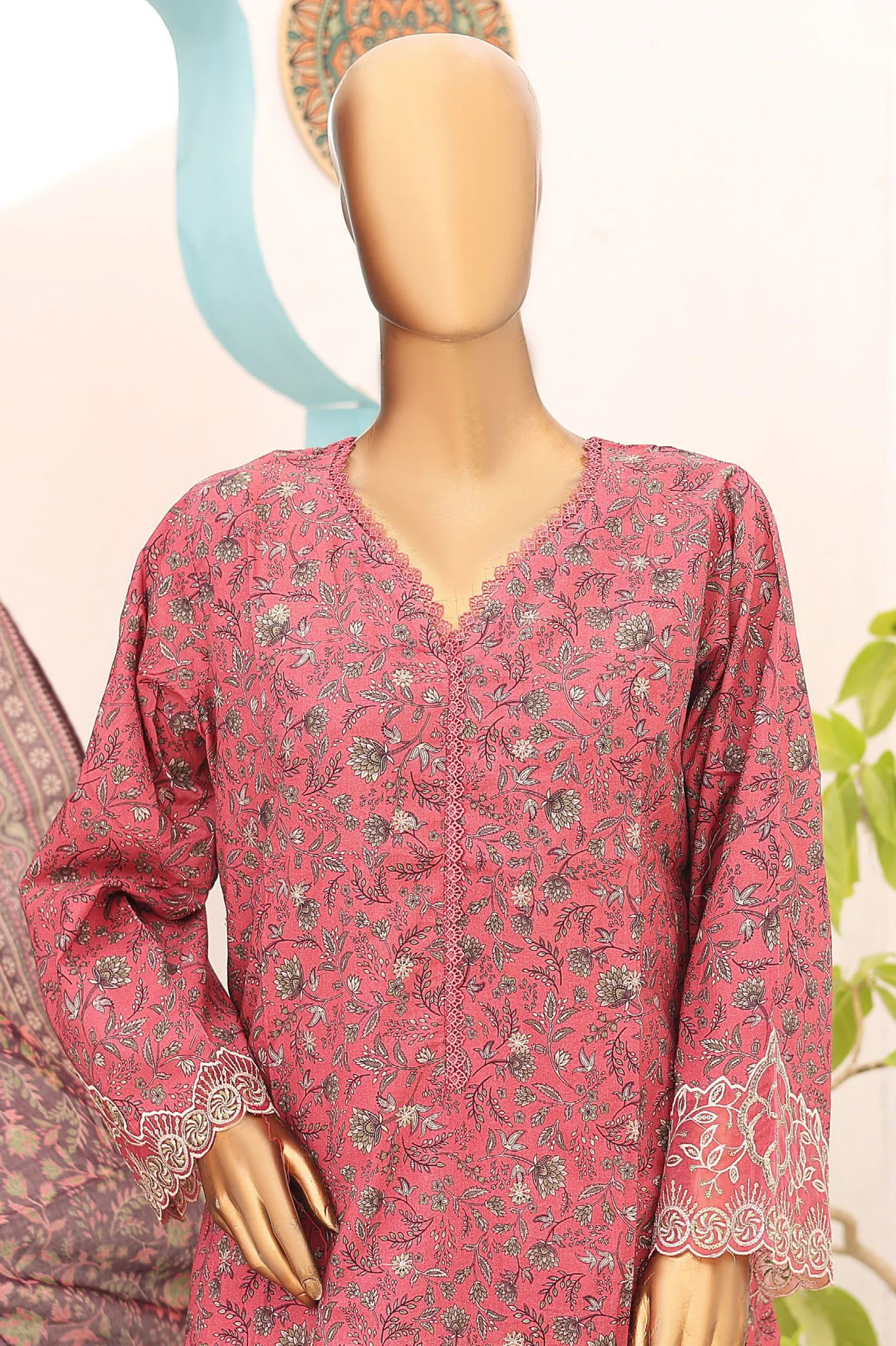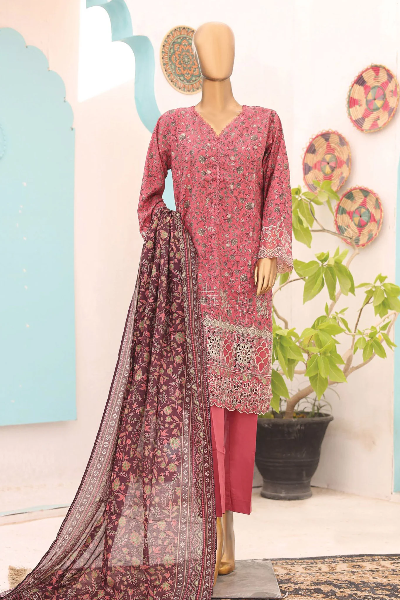 Bin Saeed Stitched 3 Piece Emb Lawnkari Vol-03 Collection’2024-SM-817-Maroon