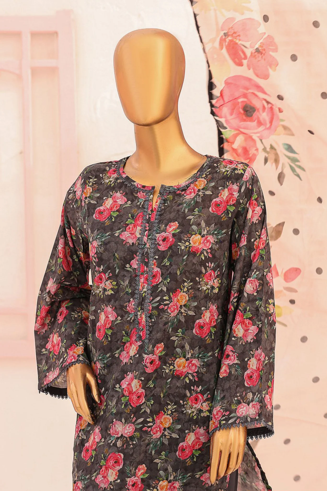 Bin Saeed Stitched 3 Piece Printed Lawn Vol-06 Collection’2024-SM-703-Black