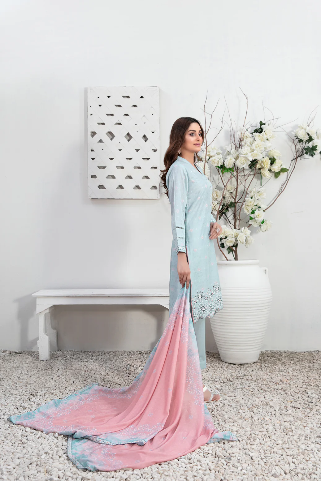 • Stitched Embroidered Broshia Banarsi Lawn Shirt Designs with Embellishments