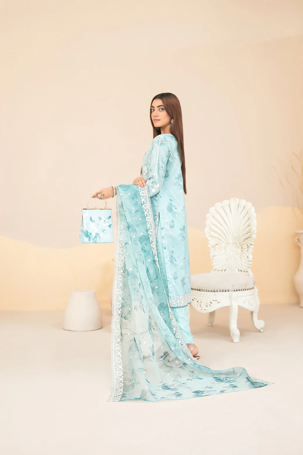 • Semi-Stitched Fancy Heavy Embroidered Organza Shirt with embellishments & Digital Printed Silk Inner