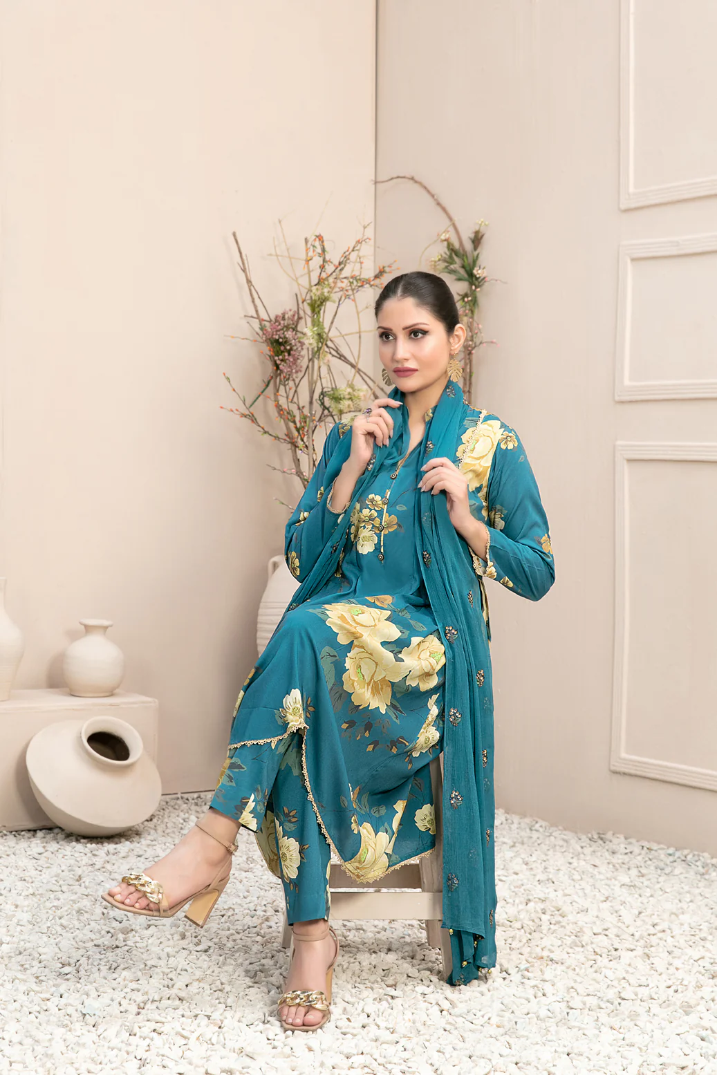 • Stitched Digital Printed Staple Shirt designs with embellishments