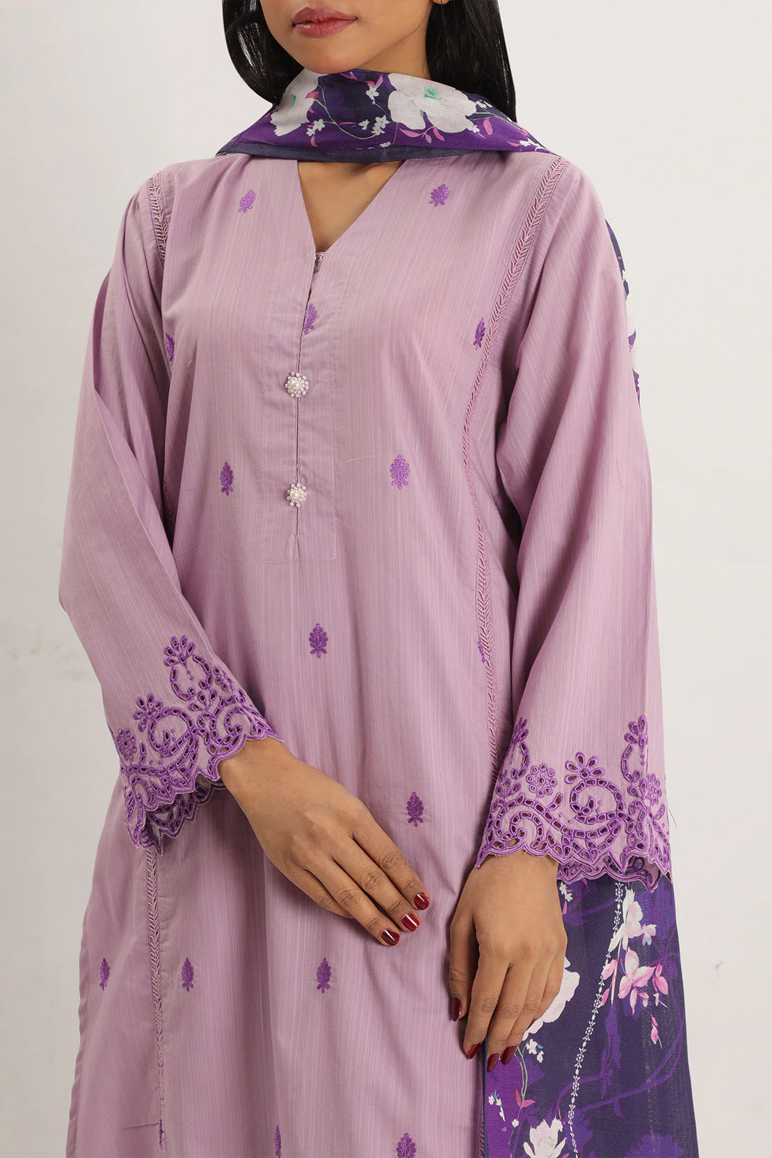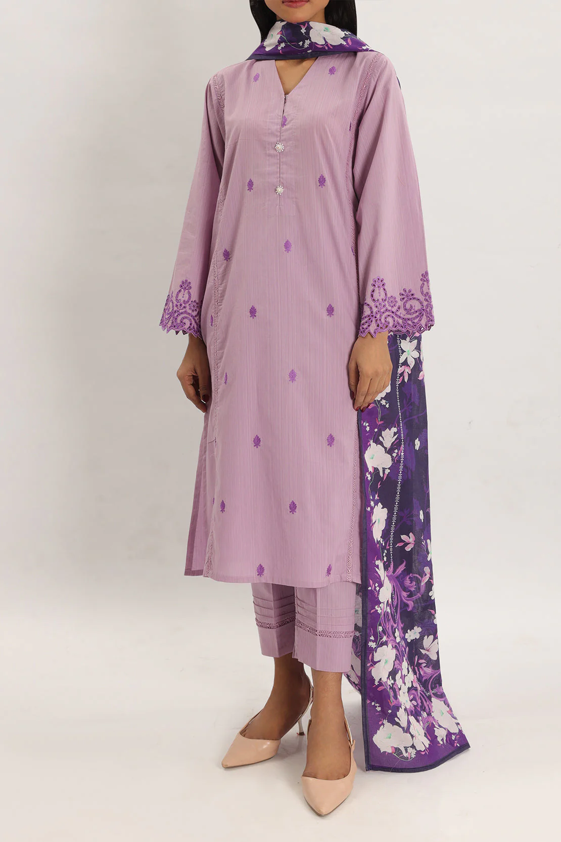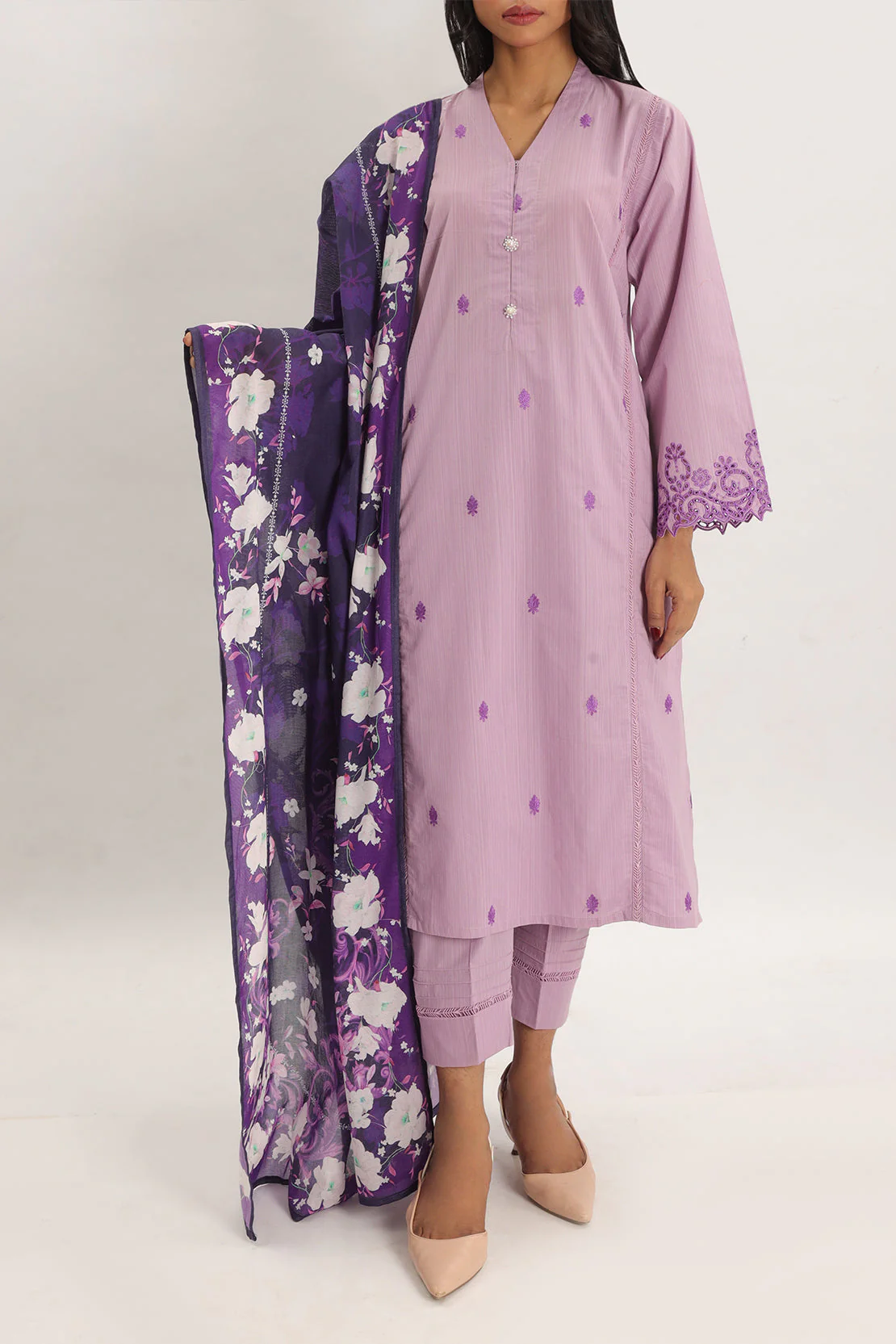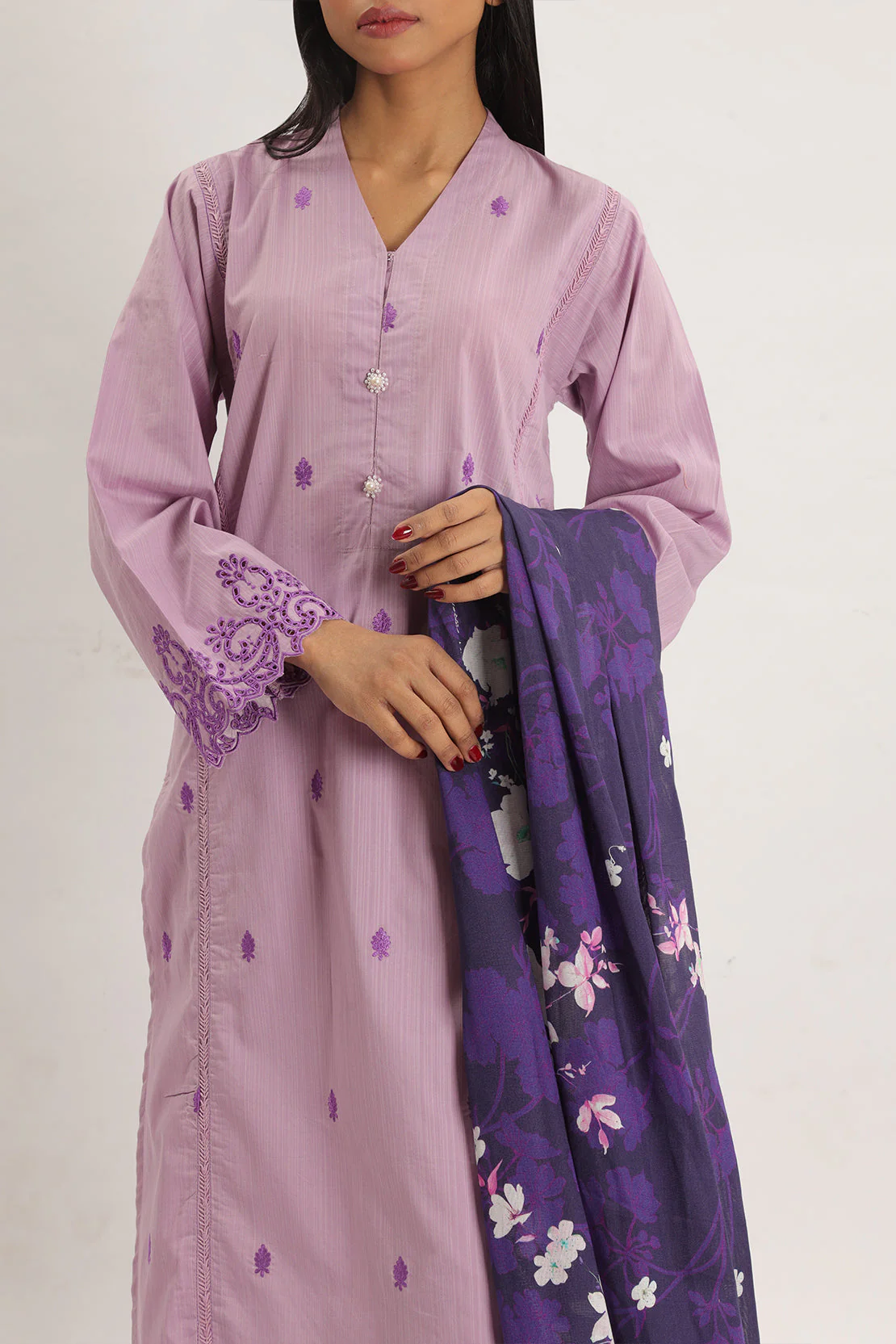 Printed Embroidered Cotton Dobby Stitched 3 Piece