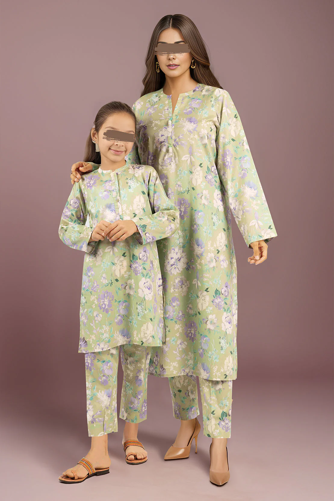 SAYA's Printed Cambric Stitched Mom And Daughter