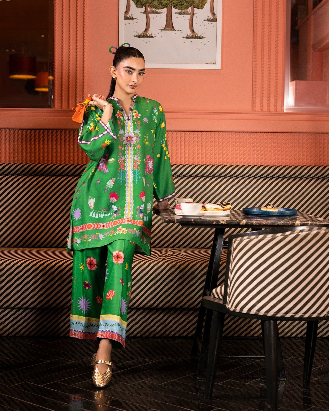 Stitched Printed Herringbone Shirt + Culotte