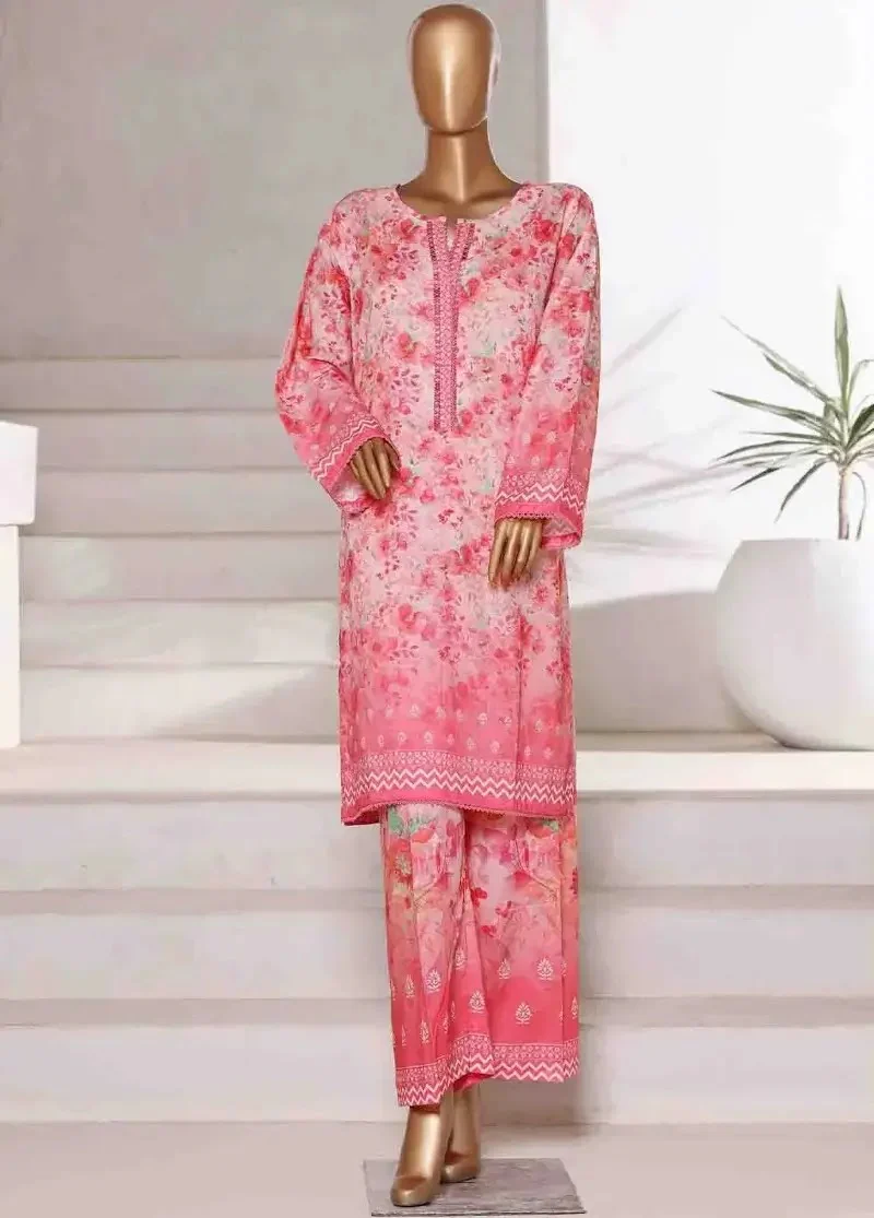 2 Piece Punch Pink Color Printed Cotton Stitched Co Ords with Printed Trouser.